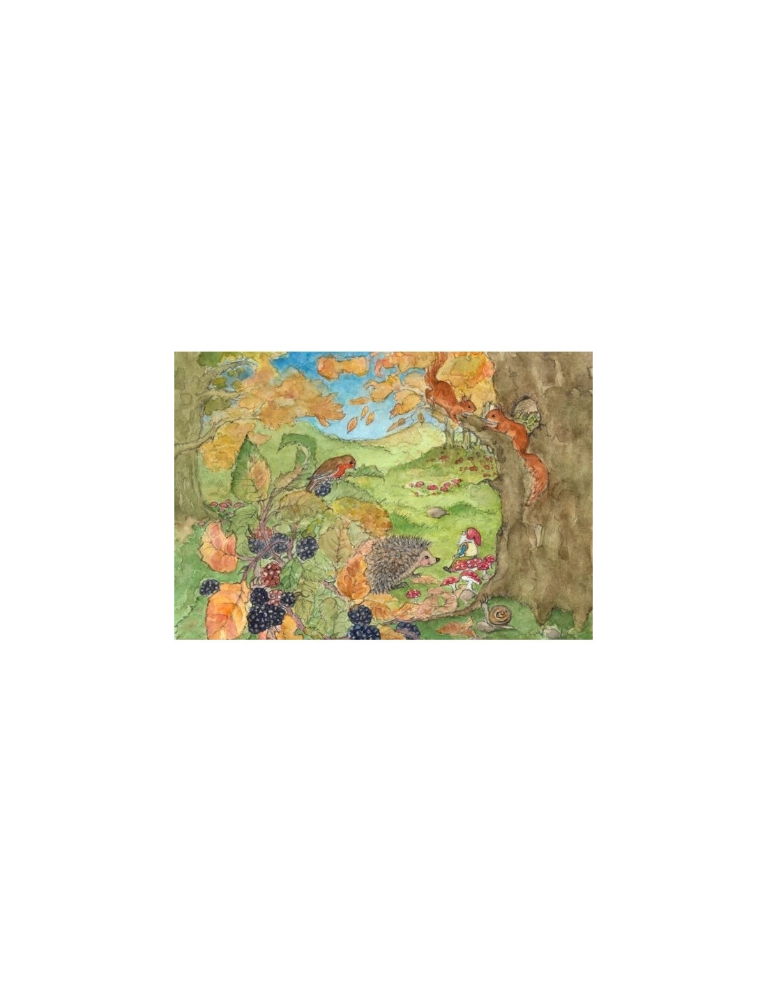 Een leuke herfstkaart met een egel in het verkleurende bos van Margo Heine